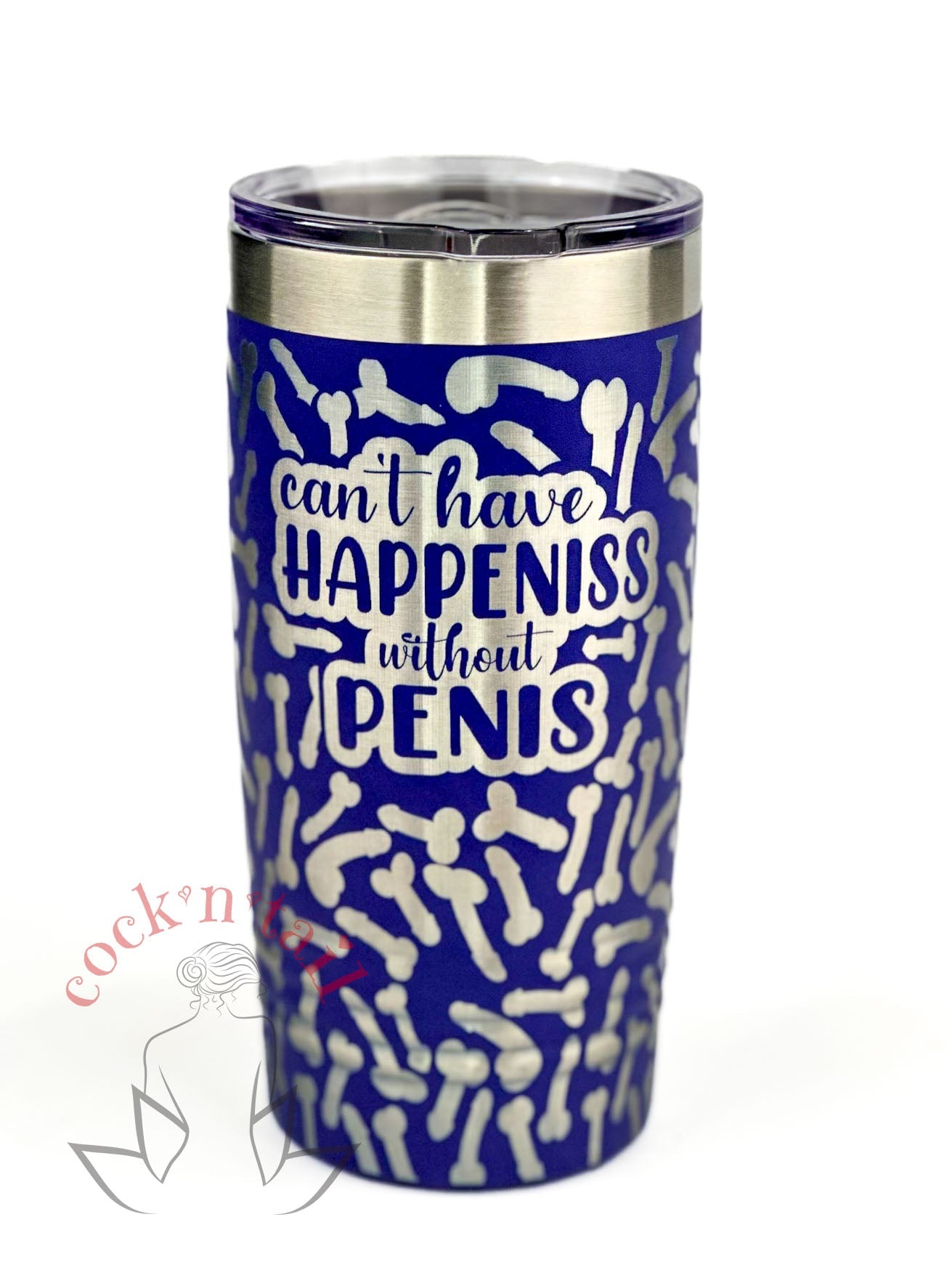 Full wrap design, you "can't spell HAPPENISS without PENIS". Our 20 oz. Stainless Steel Polar Camel Tumblers features double-wall insulation with a clear slider lid. The mug has a narrower bottom to fit most standard cup holders. It is 2X heat & cold resistant compared to a normal tumblers. Polar Camels are made from 18/8 gauge stainless steel.